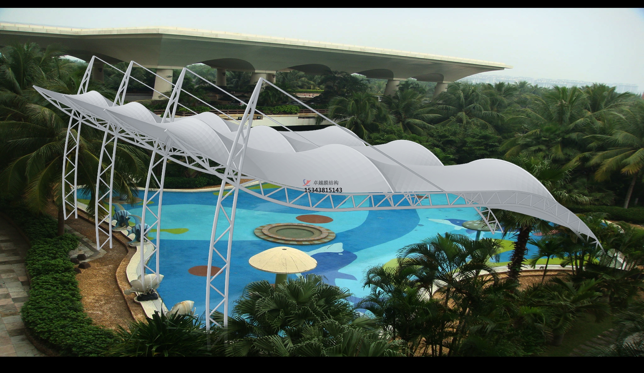 張拉膜以性能優(yōu)良柔軟織物為材料,由膜內(nèi)空氣壓力支撐膜面,或利用柔性鋼索或剛性支撐結(jié)構(gòu)使膜面產(chǎn)生一定的預(yù)張力,從而形成具有一定剛度、能夠覆蓋大空間的結(jié)構(gòu)體系。張拉膜結(jié)構(gòu)造型自由、輕巧、柔美,充滿力量感,又因其材質(zhì)的可塑造性強(qiáng),因此建筑師結(jié)合張拉膜的這種特性,充分發(fā)揮建筑師的想象力,用不同的裁剪和不同的節(jié)點(diǎn)位置形狀而產(chǎn)生出的不同的藝術(shù)表現(xiàn)形式,可謂是一種新型藝術(shù)的表現(xiàn)形式。