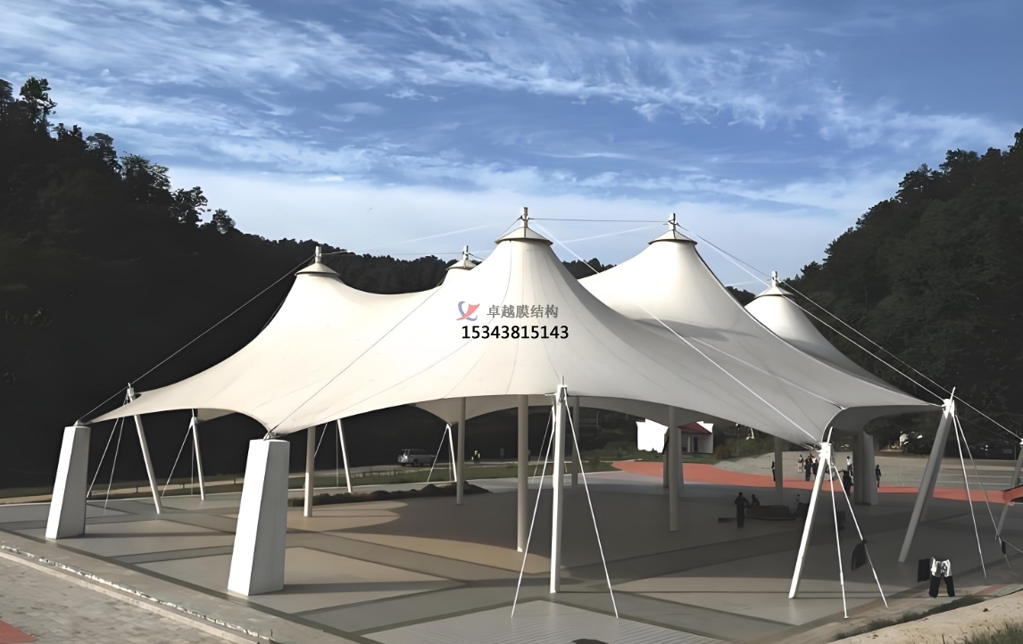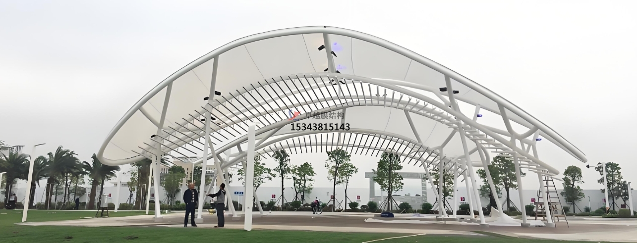 在實際應用方面,景觀膜結(jié)構(gòu)的身影遍布各個領域。在城市公園與廣場,它常被用于搭建遮陽避雨的設施,如長廊、亭子等。這些膜結(jié)構(gòu)設施不僅為市民提供了舒適的休閑空間,讓人們在戶外活動時免受日曬雨淋,其獨特的造型和光影效果,還為公園增添了濃厚的藝術(shù)氛圍,成為人們拍照打卡的熱門地點。在體育場館,大型的膜結(jié)構(gòu)屋頂和看臺設計屢見不鮮。膜結(jié)構(gòu)減輕了建筑自重,提高了場館的抗震性能,在舉辦賽事時,獨特的膜結(jié)構(gòu)造型配合燈光效果,能夠營造出熱烈而獨特的觀賽氛圍,增強觀眾的觀賽體驗。商業(yè)街區(qū)和步行街也廣泛應用景觀膜結(jié)構(gòu),可作為臨時的商業(yè)展示空間,或是裝飾性的建筑元素,吸引顧客的注意力,提升商業(yè)空間的品質(zhì)和吸引力,促進商業(yè)活動的開展。