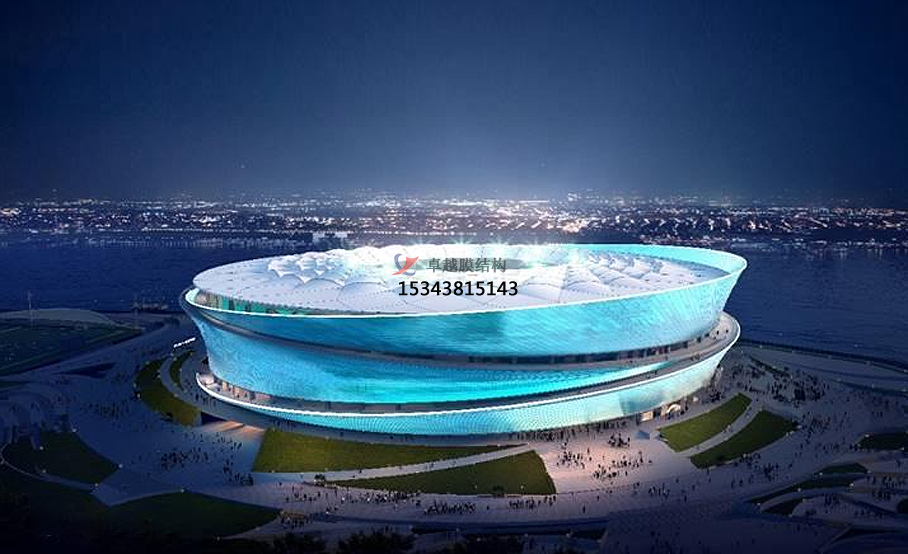 膜結構體育場館的優(yōu)勢:膜結構體育場館優(yōu)勢很多,其中就包含建筑造型優(yōu)美、空間利用率高、可透光性與采光、節(jié)能環(huán)保、施工周期短、經濟性等。膜結構能塑造出自由、輕巧、柔美的造型,如曲面、穹頂等,為體育場館帶來獨特的視覺效果,使其成為城市的標志性建筑。還可以創(chuàng)造巨大的無遮擋可視空間,無需內部支撐柱,能更好地滿足體育賽事和觀眾觀賽的需求,提高空間利用率。膜材具有良好的透光性,可使場館內部獲得充足的自然采光,減少白天對人工照明的依賴,降低能源消耗,同時營造出舒適的室內光環(huán)境。膜結構具有優(yōu)異的保溫隔熱性能,能有效降低場館的能耗,此外,膜材可回收利用,符合綠色環(huán)保理念,降低對環(huán)境的影響。相比傳統的混凝土結構或鋼結構體育場館,膜結構體育場館的施工速度更快,安裝便捷,可在較短時間內完成建設。由于膜結構自重輕,基礎和支撐結構相對簡單,可降低建筑成本,同時,其維護成本也較低。