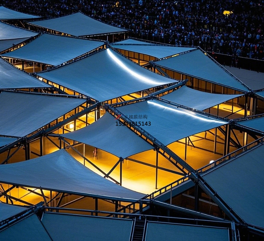 在各類演唱會、歌舞晚會、戲曲扮演等大型文藝扮演中,舞臺膜結(jié)構(gòu)的運用極為廣泛。它可以依據(jù)扮演的主題和風(fēng)格,規(guī)劃出與之相匹配的造型,為扮演營造出共同的氣氛。例如,在一場經(jīng)典歌劇的扮演中,舞臺膜結(jié)構(gòu)采用了歐式古典修建風(fēng)格的規(guī)劃,膜材外表的紋路和色彩模擬出古老修建的質(zhì)感,調(diào)配精美的燈火作用,將觀眾帶入了歌劇所描繪的時代背景中,增強了扮演的藝術(shù)感染力。在流行音樂演唱會上,膜結(jié)構(gòu)舞臺則常常規(guī)劃成賦有現(xiàn)代感和科技感的造型,經(jīng)過與燈火、音響等設(shè)備的配合,為歌手的扮演打造出炫酷的舞臺作用,滿足觀眾對視覺和聽覺的兩層享用。