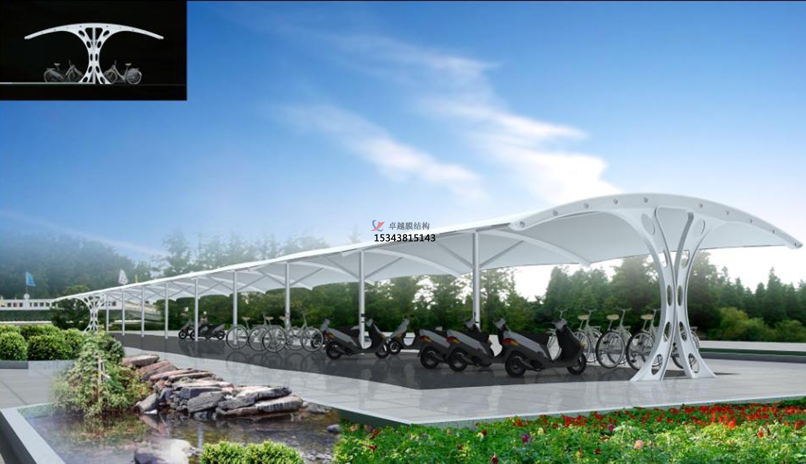 結(jié)構(gòu)形式:骨架式張拉膜充電樁車棚