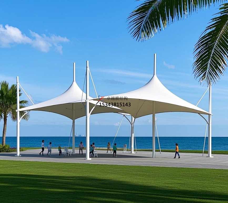 膜結(jié)構(gòu)景觀亭放置在公園的開闊草坪、花壇中央等顯眼位置,成為公園的標志性景觀。其多樣的造型,如傘狀、蘑菇狀、飛鳥狀等,吸引著游客的目光,成為公園的視覺焦點。亭內(nèi)設(shè)置的座椅、茶幾等休閑設(shè)施,供游客休息、交談,部分景觀亭配備的照明設(shè)備,在夜間亮起,將景觀亭裝點得格外美麗,成為公園亮化景觀的一部分,為公園增添浪漫氛圍。