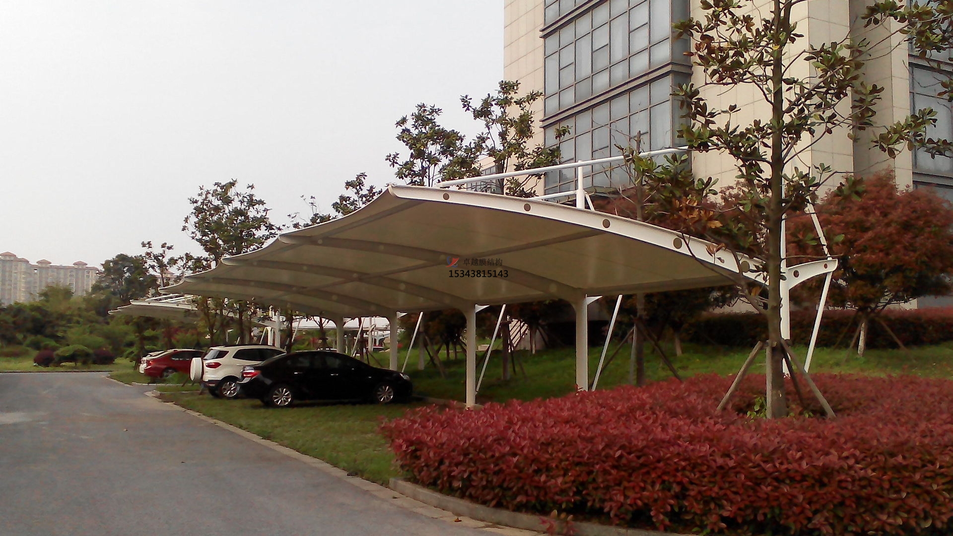 以膜材、鋼索及支柱構成,利用鋼索與支柱在膜材中導入張力以達安定的形式。除了可實踐具創(chuàng)意,創(chuàng)新且美觀的造型外,也是能展現商業(yè)廣場雨棚搭建精神的構造形式.近年來,大型跨距空間也多采用以鋼索與壓縮材構成鋼索網來支撐上部膜材的形式。因施工精度要求高,結構性能強,且具豐富的表現力,所以造價略高于骨架式商業(yè)廣場雨棚搭建。