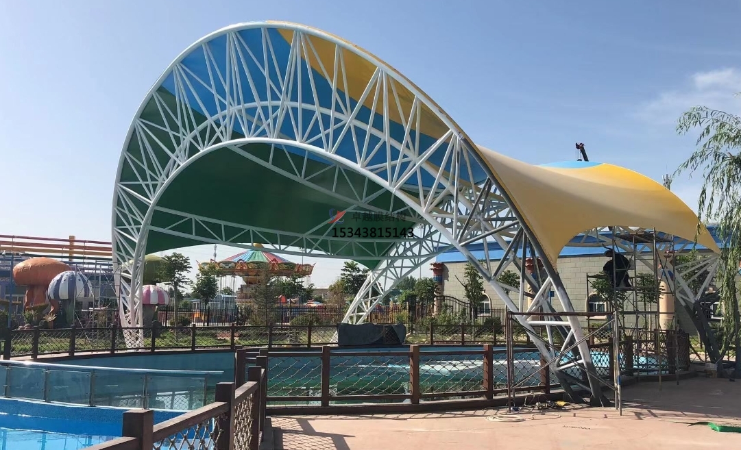 膜結(jié)構(gòu)遮陽棚是水上樂園中不可或缺的設(shè)計元素。它不僅能為游客提供遮陽、防雨的功能,還能與樂園的整體景觀融為一體,增添一道獨特的風(fēng)景線。