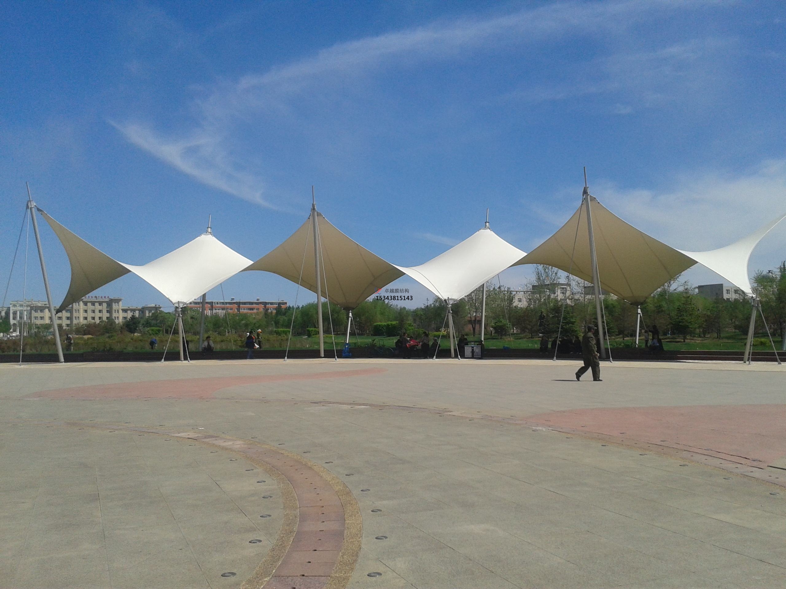 1、遮陽效果好,人們對陽光的需求一年四季是不同的,冬季喜歡,夏季厭煩,確實(shí)在夏天炙熱的陽光可以把東西曬壞,那么使用商業(yè)廣場雨棚搭建就不用擔(dān)心了,能有效的遮擋陽光,陽光照射到遮陽棚的時(shí)候被膜結(jié)構(gòu)給反射出去了,這樣棚下的溫度不會太高。