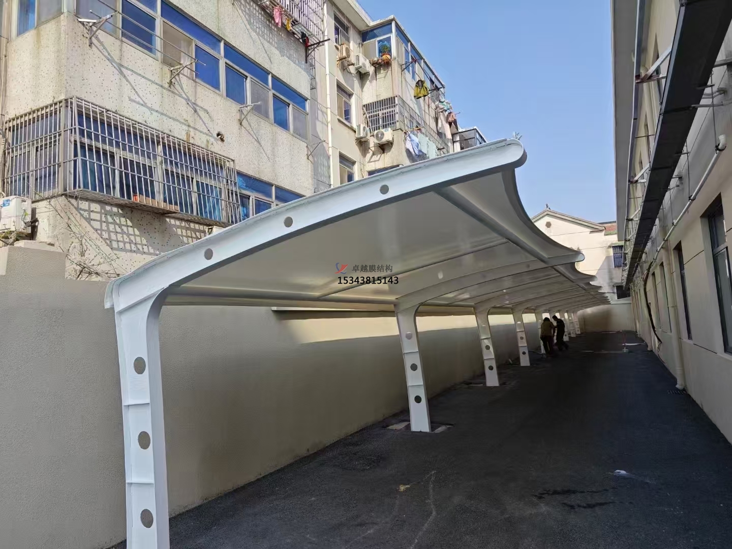膜結(jié)構(gòu)車棚不僅成為非機(jī)動(dòng)車的停放場(chǎng)所,更成為城市景觀的一部分。