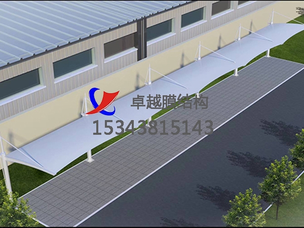 Teflon材料強(qiáng)度高、彈性模量大、自潔、耐久耐火等性能好,但它價(jià)格較貴,不易折疊,對(duì)膜結(jié)構(gòu)車棚裁剪制作精度要求較高,壽命一般在30年以上,適用于永久建筑。