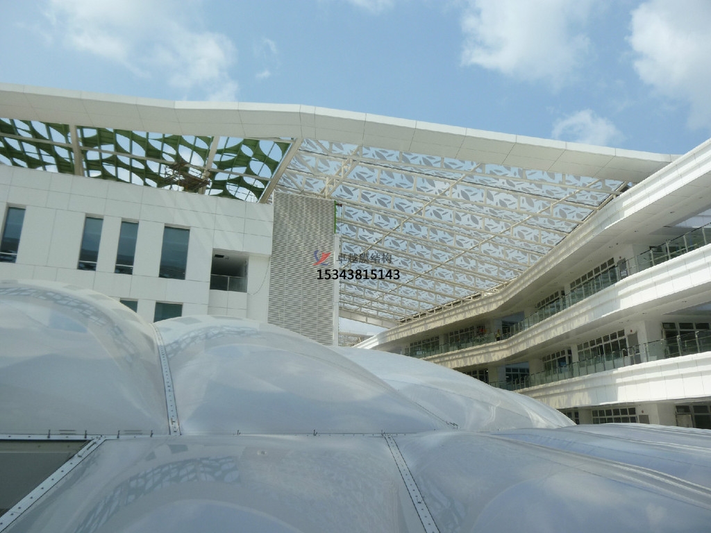 ETFE膜結(jié)構(gòu)是通明修建構(gòu)造中質(zhì)量?jī)?yōu)勝的代替資料,多年來(lái)在很多工程中以其很多長(zhǎng)處被證實(shí)為可信賴且經(jīng)濟(jì)實(shí)法膽瘁感誆啡搭拾但漿用的房頂資料。該膜是由人工#度氟聚合物(ETFE)制成,其特有抗粘著外表使其具有高抗污,易清洗的特色。通常雨水即可鏟除很好的要塵垢。
