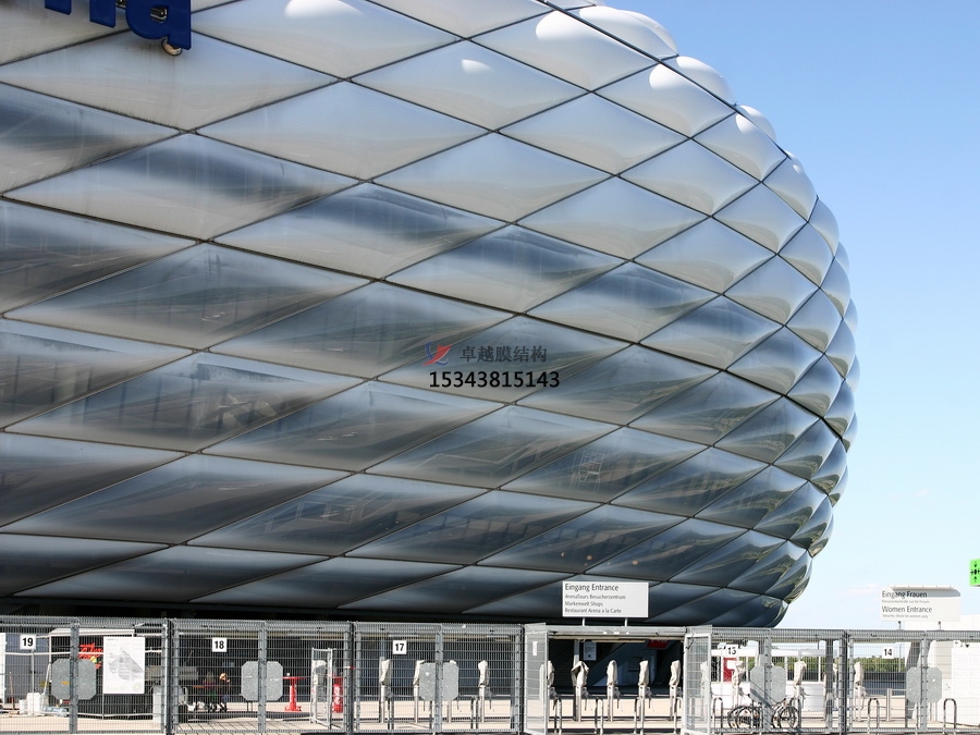 8)生產(chǎn)廠家對(duì)ETFE膜材料的質(zhì)量保證期為10年,實(shí)際的使用壽命可超過20年。