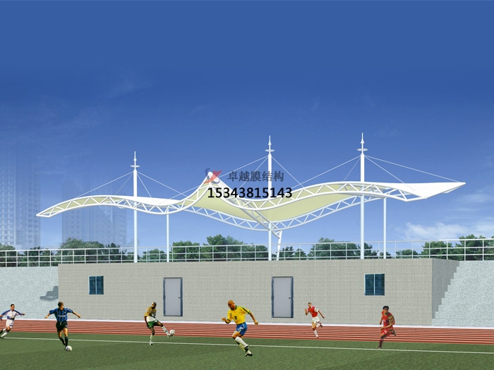 張拉膜看臺主要用于各類地方體育場主席臺雨棚,各類學校體育場看臺雨棚遮蓋,我公司是國內(nèi)較早從事大懸挑張拉膜結(jié)構(gòu)看臺設(shè)計施工的專業(yè)廠家,下面介紹一下我們在酒泉周邊縣市完工的一些張拉膜看臺設(shè)計施工案例,我公司先后在酒泉周邊承接了酒泉職業(yè)技術(shù)學院看臺雨棚、甘肅省酒泉衛(wèi)生學校張拉膜張拉膜看臺罩棚、酒泉市北關(guān)小學張拉膜看臺遮陽棚張拉膜看臺遮陽棚等設(shè)計施工項目,簡介如下: