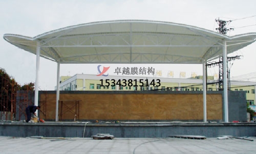 ?。?)張拉式商業(yè)廣場(chǎng)雨棚搭建,其形狀相似帳子。它的結(jié)構(gòu)構(gòu)成機(jī)制與預(yù)應(yīng)力索網(wǎng)相似,呈負(fù)高斯曲率的鞍形曲面形狀,張緊在柔性或剛性的邊際構(gòu)件上,還可使用桅桿或立柱供給獨(dú)立的吊點(diǎn);張拉式商業(yè)廣場(chǎng)雨棚搭建要通過(guò)必定的張拉手法建立預(yù)應(yīng)力,使之具有必要的剛度。