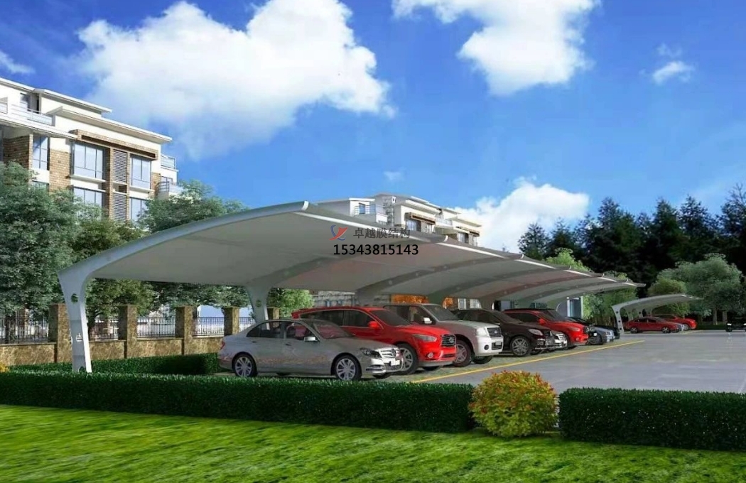 膜結(jié)構(gòu)車棚可以為大量的車輛提供停車空間,緩解停車壓力。