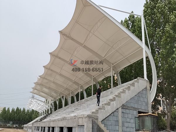膜結(jié)構(gòu)看臺,在更近幾年的材料市場上,是一個全新的存在,在上市的短短時間內(nèi)就快速的占領(lǐng)了市場,因為膜結(jié)構(gòu)看臺能夠?qū)⒄麄€看臺很好的籠罩在其中,能夠完成傳統(tǒng)建筑完全不能完成的工程,而且他的自身重量非常的輕,在施工的時候就相對安全得多,這也成為他不可取代的優(yōu)勢。膜結(jié)構(gòu)看臺在建設(shè)的時候有很多需要留意的,都有哪些需要留意的呢?下面小編簡單的和大家分享一下我們的項目【周口淮陽縣一高膜結(jié)構(gòu)看臺】希望對大家有所幫助。