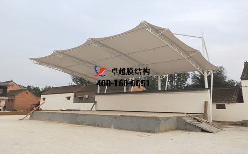 焦作武陟東水寨村膜結構看臺/舞臺項目,膜材展開面積為200平方,工程總造價******元,膜材單價***元(保密,具體請咨詢客服,想了解價格的可以參考《膜結構價格》)