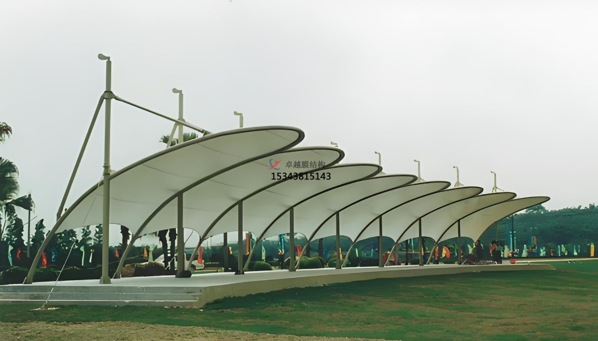 1、高強(qiáng)度與輕重量:膜結(jié)構(gòu)所采用的材料是高強(qiáng)度織物材料,經(jīng)緯交織,雙面PVDF涂層,耐久性長達(dá)10年以上。同時,其重量輕,相當(dāng)于普通鋼結(jié)構(gòu)屋面的1/10,能滿足大跨度的要求,非常適合高爾夫球場發(fā)球臺等大面積區(qū)域的建設(shè)。