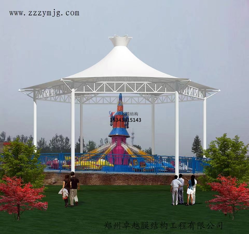 膜結(jié)構(gòu)遮陽棚造型設(shè)計:其造型設(shè)計主要從整體風(fēng)格和形狀設(shè)計兩方面出發(fā)。其中整體風(fēng)格是指根據(jù)使用場所和客戶喜好確定遮陽棚的整體風(fēng)格,如簡約現(xiàn)代、歐式古典、自然生態(tài)等。可以通過調(diào)整遮陽棚的形狀、線條、色彩來實現(xiàn)不同的風(fēng)格效果。形狀設(shè)計,膜結(jié)構(gòu)遮陽棚的形狀豐富多樣,常見的有平頂式、坡頂式、拱形式、傘形式等。還可以根據(jù)場地的特殊要求和創(chuàng)意設(shè)計出獨特的形狀,如仿生形、自由曲線形等,以增加遮陽棚的美觀性和獨特性。