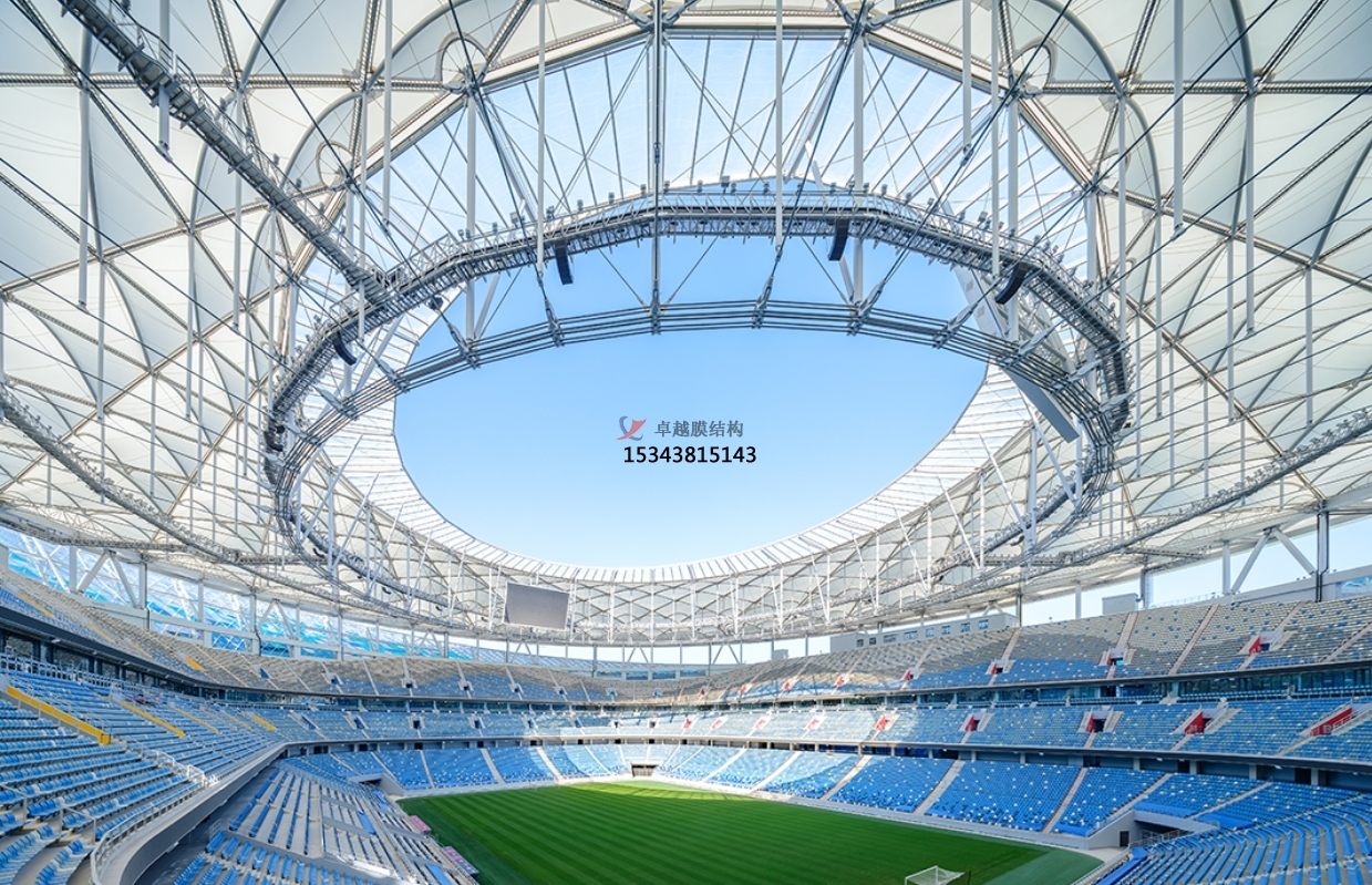 ETFE 膜的柔性特質(zhì)要求支撐結(jié)構(gòu)兼具強度與適應(yīng)性。典型案例如廈門新體育中心,采用 “巨拱 + 車輻式索網(wǎng)” 體系,通過 40 榀索桁架與內(nèi)環(huán)索形成三維受力網(wǎng)絡(luò),并在徑向索上方疊加獨立索網(wǎng),最終以 722 道托膜索與鋁合金槽實現(xiàn)膜面精準(zhǔn)張拉。這種設(shè)計不僅滿足了 86 米高空作業(yè)的穩(wěn)定性需求,更通過曲面造型優(yōu)化了排水效率。