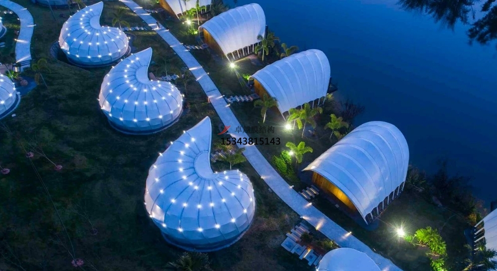 膜結(jié)構(gòu)帳篷酒店是一種結(jié)合獨(dú)特外觀和快速搭建的住宿方式,采用輕質(zhì)、柔性的膜材料作為建筑外殼。這種帳篷酒店在旅游業(yè)中引起了廣泛關(guān)注,并吸引了眾多旅行者尋求與自然親近的獨(dú)特住宿體驗(yàn)。
