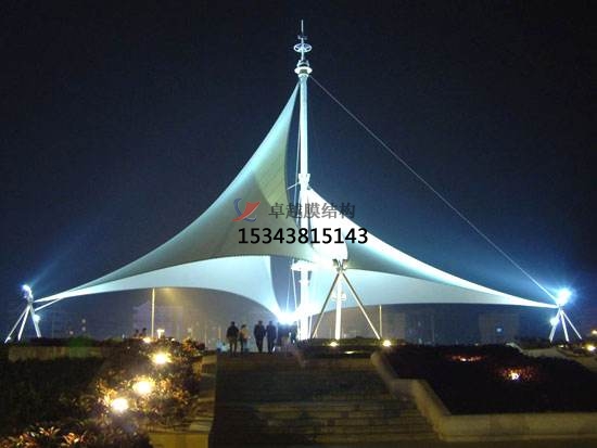 一個(gè)城市的中心區(qū)反映一個(gè)城市的地理風(fēng)貌和民族風(fēng)情,同時(shí),也是一個(gè)城市文化發(fā)展程度的標(biāo)志。而景觀設(shè)計(jì)要求其具有廣泛的可讀性、雅俗共賞,既有超凡脫俗的藝術(shù)價(jià)值,又能使大眾喜聞樂(lè)見(jiàn)與大眾息息相通。張拉膜以其鮮明的個(gè)性和標(biāo)識(shí)性,應(yīng)用于城市小品設(shè)計(jì)中。