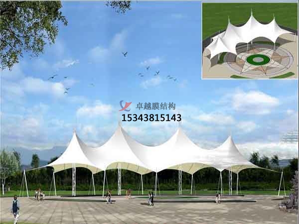 項(xiàng)目結(jié)構(gòu)形式:骨架式膜結(jié)構(gòu)景觀,自然排水。