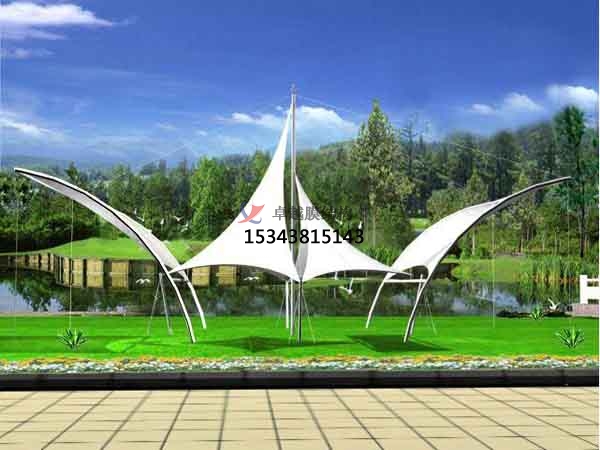 2、膜結(jié)構(gòu)主要應(yīng)用景觀張拉膜能提供豐富多彩的用途,并與園林景觀溶為一體。創(chuàng)造出讓人們盡情享受的快樂空間。充分展示了結(jié)構(gòu)構(gòu)件清晰受力的藝術(shù)之美,它巧妙的整合周圍的環(huán)境,給人們一種高貴典雅、浪漫溫馨之感。我公司是具有獨(dú)立法人資格,從設(shè)計(jì)-生產(chǎn)-運(yùn)輸-施工為一體的專業(yè)廠家,下面大家一起來了解一下我司在普洱市周邊縣市完工的一些膜結(jié)構(gòu)景觀案例,我司先后在普洱地區(qū)承接了普洱茶源廣場(chǎng)膜結(jié)構(gòu)景觀、普洱大世界購物中心景觀小品、普洱火車站景觀小品的設(shè)計(jì)施工,簡介如下: