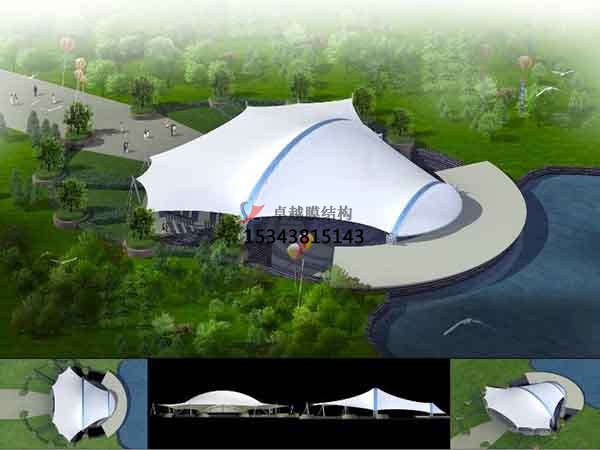 張拉膜結構可以使建筑師設計出各種張力自平衡、復雜生動的空間形式。一天之內,隨著光線的變化,濟南膜結構雕塑通過光影呈現(xiàn)出不同的形態(tài)。日出日落時,低入射角的光線將突出屋頂的曲率和浮雕效果。當太陽處于遠地點時,薄膜結構的流線邊界將在地面上投射出彎曲的陰影通過膜材料的透光和反射,設計出的人工光也可以使膜結構成為光雕塑。