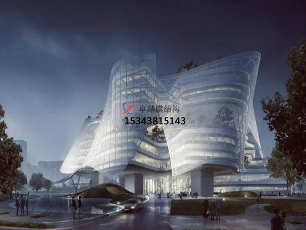 膜結(jié)構(gòu)建筑具有藝術(shù)性,充分發(fā)揮建筑師的想象力,又體現(xiàn)結(jié)構(gòu)構(gòu)件清晰受力之美。由于膜材具有一定的透光率,白天可減少照明強(qiáng)度和時(shí)間,能很好的節(jié)約能源。同時(shí)夜間彩燈投射形成的絢爛景觀也能達(dá)到很好的宣傳效益。