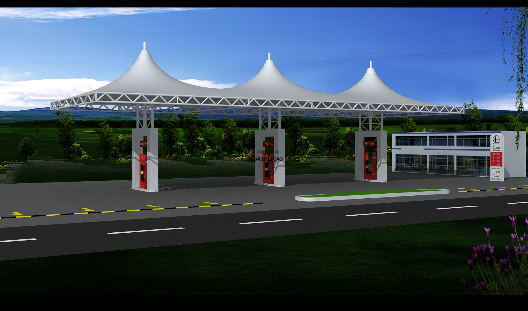3、中國(guó)石化加油站(九都東路站)張拉膜雨棚/頂蓋