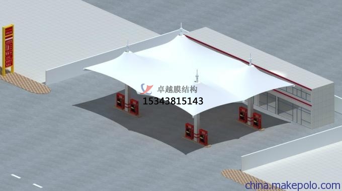 3、中國(guó)石化加油站(賽魚(yú)站)張拉膜雨棚/頂蓋