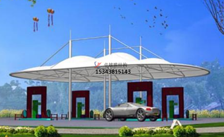 加油站膜結(jié)構(gòu),一般是指安裝在加油站的膜結(jié)構(gòu)頂棚。膜結(jié)構(gòu)頂棚因其自重輕,具有良好的受力特點,所以成為大跨度空間結(jié)構(gòu)的主要形式之一,加油站膜結(jié)構(gòu)也屬于其范疇。
