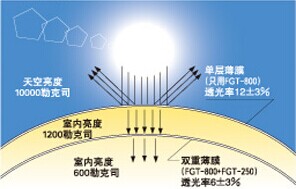 (透光性):通過氟樹脂膜材料進入建筑物的自然光會變成自然擴散光,造就陰影少的柔和空間。