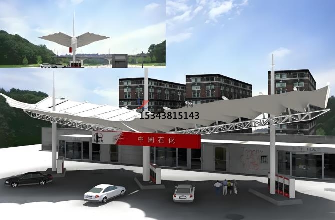 加油站張拉膜未來發(fā)展趨勢無限大。隨著綠色建筑理念普及,張拉膜結(jié)構(gòu)在加油站中的應(yīng)用將進一步拓展,例如結(jié)合光伏發(fā)電膜材實現(xiàn)能源自給,或通過智能化控制系統(tǒng)調(diào)節(jié)遮光率。其輕量化、高自由度的特點也將推動更多創(chuàng)新型服務(wù)空間的設(shè)計。