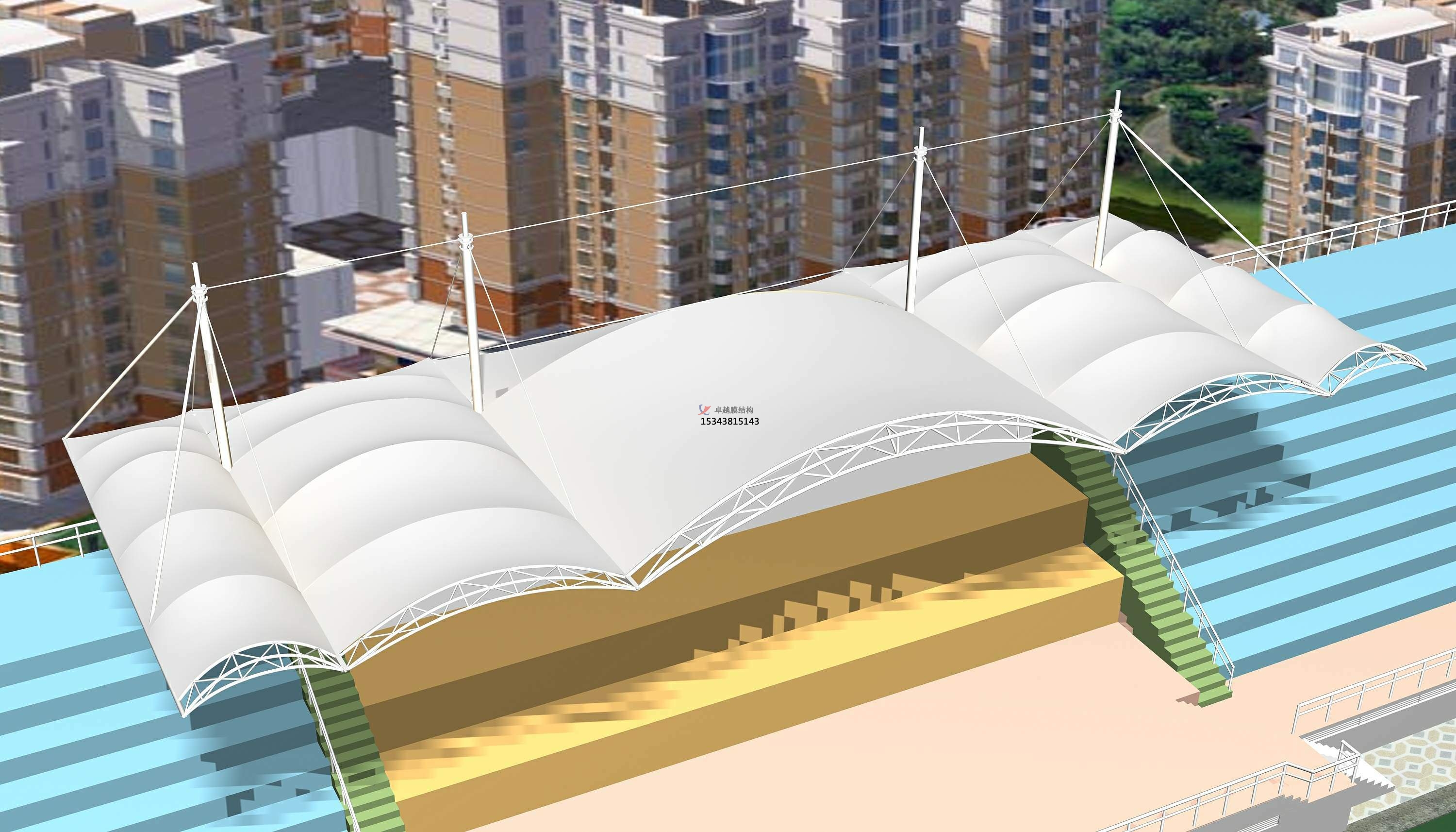 3、汝陽(yáng)縣實(shí)驗(yàn)高中膜結(jié)構(gòu)看臺(tái)雨篷/主席臺(tái)/舞臺(tái)安裝遮陽(yáng)棚