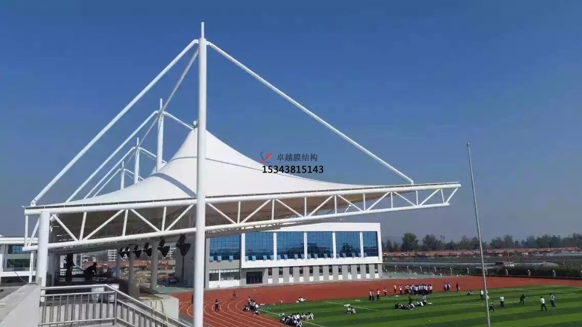 張拉膜看臺(tái)主要用于各類地方體育場(chǎng)主席臺(tái)雨棚,各類學(xué)校體育場(chǎng)看臺(tái)雨棚遮蓋,我公司是國(guó)內(nèi)較早從事大懸挑張拉膜結(jié)構(gòu)看臺(tái)設(shè)計(jì)施工的專業(yè)廠家,下面介紹一下我們?cè)谝链ㄖ苓吙h市完工的一些張拉膜看臺(tái)設(shè)計(jì)施工案例,我公司先后在新安縣周邊承接了伊川縣第高級(jí)中學(xué)膜結(jié)構(gòu)看臺(tái)雨篷/主席臺(tái)/舞臺(tái)安裝雨棚、河南省伊川高中張拉膜張拉膜看臺(tái)罩棚、洛寧縣思源實(shí)驗(yàn)學(xué)校張拉膜看臺(tái)遮陽(yáng)棚等設(shè)計(jì)施工項(xiàng)目,簡(jiǎn)介如下: