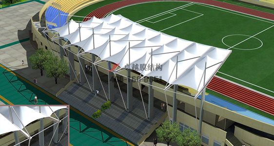 作為一種柔性材料,其對建筑的造型是多種多樣的,是其他材料所無法比擬的。因此,它也創(chuàng)造了各種膜結(jié)構(gòu)的特點,充分體現(xiàn)了建筑的形狀塑造力和輕盈優(yōu)雅的動態(tài)曲線的外觀。材料的多系列色彩進一步豐富了建筑的整體造型。材料的色彩具有良好的色牢度和耐久性,使膜結(jié)構(gòu)完全擺脫了單一色彩的單調(diào)重復,使建筑和交通設施更加豐富多彩。