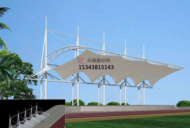 看臺(tái)膜結(jié)構(gòu)是用高強(qiáng)度柔性薄膜材料經(jīng)受其它材料的拉壓作用而形成的穩(wěn)定曲面,能承受一定外荷載的空間結(jié)構(gòu)形式。 其造型自由、輕巧、美,充滿力量感,阻燃、制作簡(jiǎn)易、安裝快捷、節(jié)能易于、使用安全等優(yōu)點(diǎn).因而使它在世界各地受到廣泛應(yīng)用。