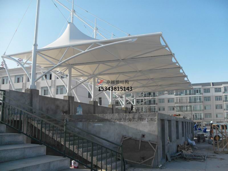 張拉膜看臺主要用于各類地方體育場主席臺雨棚,各類學校體育場看臺雨棚遮蓋,我公司是國內(nèi)較早從事大懸挑張拉膜結(jié)構(gòu)看臺設計施工的專業(yè)廠家,下面介紹一下我們在武漢周邊縣市完工的一些張拉膜看臺設計施工案例,我公司先后在武漢周邊承接了武漢外國語學??磁_雨棚、武漢市建設學校張拉膜張拉膜看臺罩棚、武漢楓葉國際學校張拉膜看臺遮陽棚張拉膜看臺遮陽棚等設計施工項目,簡介如下: