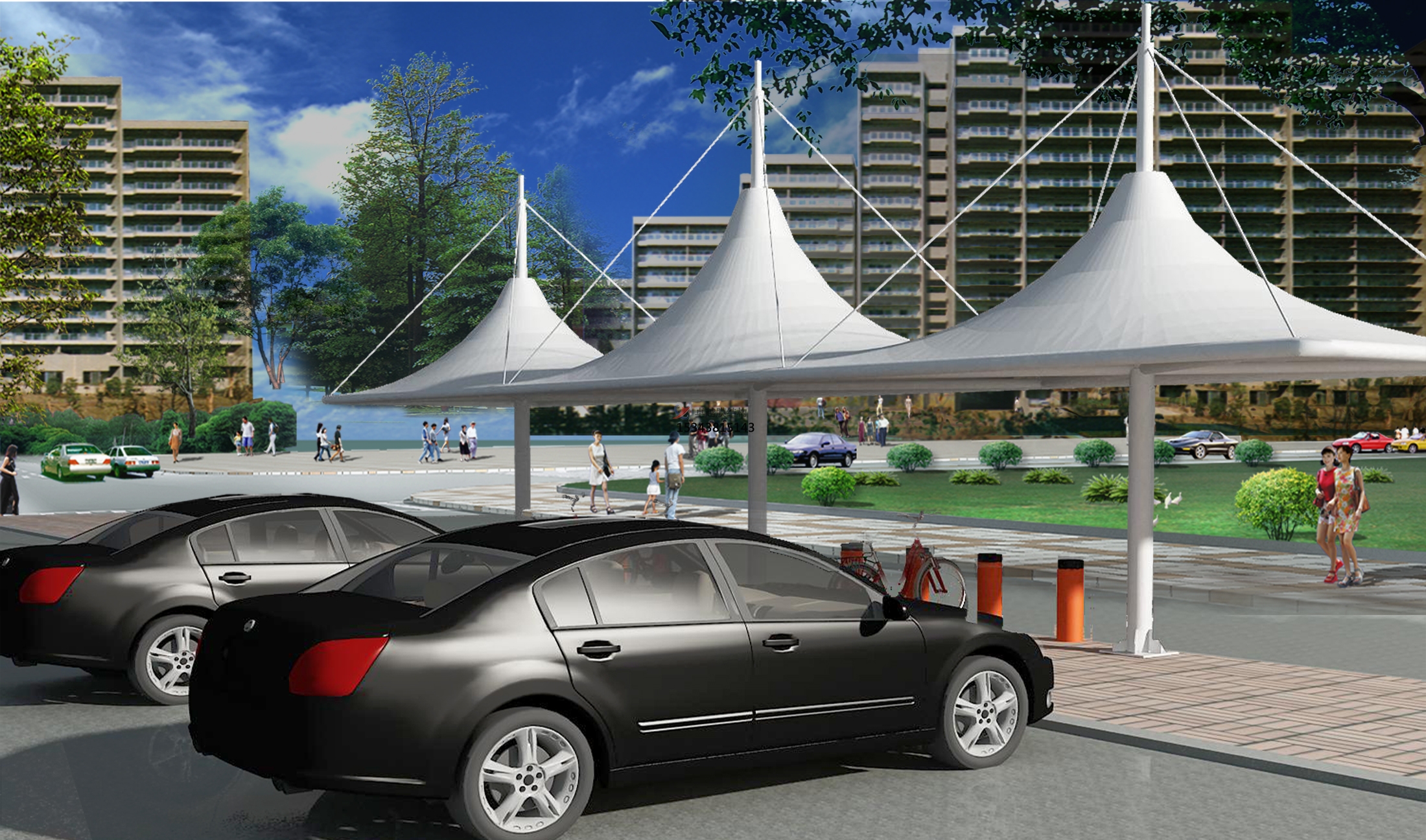 2、一個(gè)城市的中心區(qū)反映一個(gè)城市的地理風(fēng)貌和民族風(fēng)情,同時(shí),也是一個(gè)城市文化發(fā)展程度的標(biāo)志。而景觀設(shè)計(jì)要求其具有廣泛的可讀性、雅俗共賞,既有超凡脫俗的藝術(shù)價(jià)值,又能使大眾喜聞樂見與大眾息息相通。張拉膜以其輕盈飄逸的造型、柔美并帶有力量的曲線和大跨度和大空間的鮮明個(gè)性和標(biāo)識性,應(yīng)用于城市小品設(shè)計(jì)中。