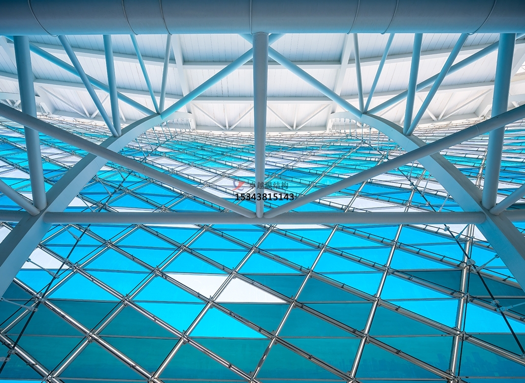 為了進一步優(yōu)化結構性能,降低 ETFE 膜材的應力,提高膜面的穩(wěn)定性,出現(xiàn)了單層 ETFE 加雙向鋼索的結構形式。采用雙向鋼索,可以產(chǎn)生較多的單元區(qū)格,使得 ETFE 膜材的應力分布更加均勻,應力值顯著降低。在每個方向上,與單向鋼索的結構形式相比,鋼索的間距或索徑可以降低,同時膜面變形也有所改善。這種結構形式在大型展覽中心、機場候機大廳等大空間建筑中具有廣泛的應用前景,能夠為建筑提供寬敞、明亮且穩(wěn)定的內(nèi)部空間。但雙向鋼索結構的施工難度和成本相對較高,需要更加精確的設計和施工工藝來確保其性能的實現(xiàn)。