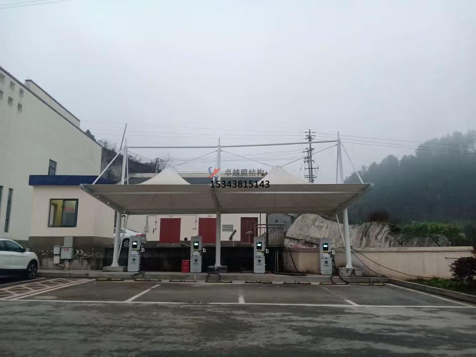 除了充電樁雨棚膜結(jié)構(gòu)造價(jià)低,還有膜結(jié)構(gòu)雨棚性能好,自潔性高還能隔熱防靜電等優(yōu)點(diǎn)。