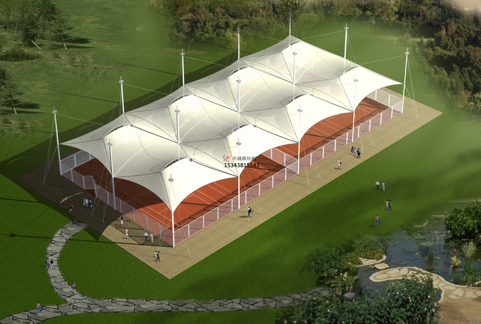 膜結(jié)構(gòu)籃球場是一種采用薄膜結(jié)構(gòu)材料覆蓋的籃球場,其主要特點(diǎn)是使用輕質(zhì)且高強(qiáng)度的膜材料,創(chuàng)造出大跨度的無柱遮蔭空間。以下是膜結(jié)構(gòu)籃球場的一般建造步驟: