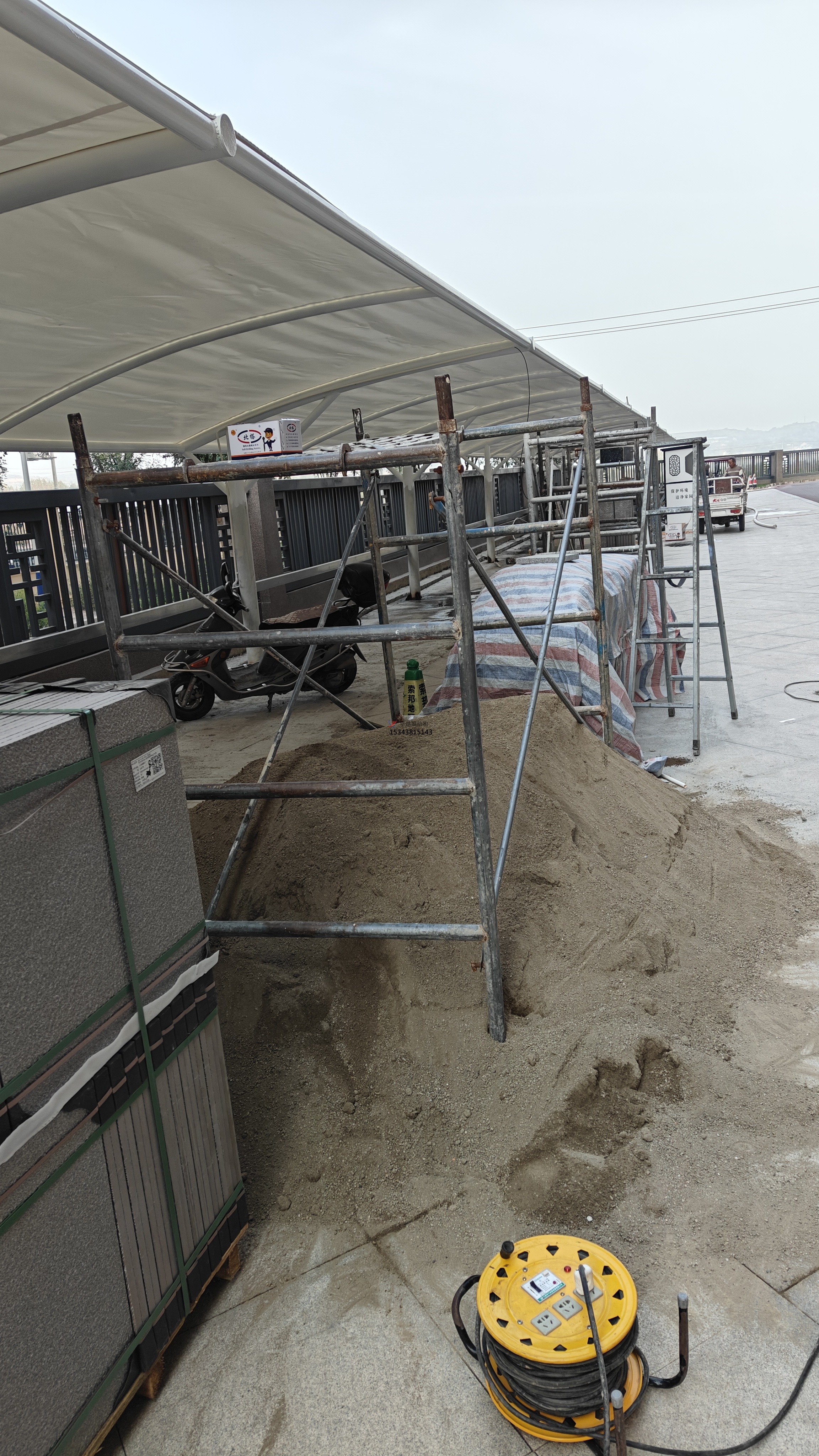 :將加工好的膜材運(yùn)輸?shù)浆F(xiàn)場(chǎng),存放時(shí)避免陽(yáng)光直射、潮濕環(huán)境,防止老化變形。準(zhǔn)備好安裝所需輔助材料(如螺栓、夾具等)和工具(如張拉設(shè)備、吊裝設(shè)備等)。