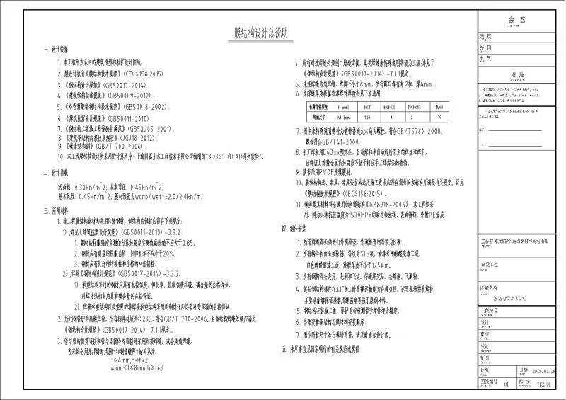荷載分析是膜結(jié)構(gòu)設(shè)計的關(guān)鍵環(huán)節(jié)。設(shè)計圖紙中詳細列出作用在膜結(jié)構(gòu)上的各類荷載,包括永久荷載(如膜材自重、支撐結(jié)構(gòu)自重)、可變荷載(如風(fēng)荷載、雪荷載、人員活動荷載、設(shè)備荷載)以及偶然荷載(如地震作用)。通過專業(yè)的結(jié)構(gòu)分析軟件,對膜結(jié)構(gòu)在不同荷載組合下的應(yīng)力、應(yīng)變進行精確計算,確保結(jié)構(gòu)在各種工況下均能滿足強度、剛度和穩(wěn)定性要求。例如,在風(fēng)荷載計算中,需考慮當(dāng)?shù)氐娘L(fēng)速、風(fēng)向、地形等因素,合理確定風(fēng)壓系數(shù),保證膜結(jié)構(gòu)在強風(fēng)天氣下的安全可靠。