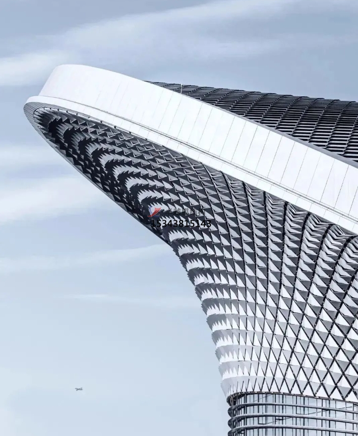 “鳳凰”與成都本土音樂(lè)文化有著很深源淵,與項(xiàng)目所在地“鳳凰山”和其所蘊(yùn)含的場(chǎng)地空間意向也高度契合的概念是貫穿于主舞臺(tái)設(shè)計(jì)中的主題,不僅建筑整體形似鳳冠的造型,1743塊四棱錐雙曲面鋁板幕墻與3340塊魚鱗疊加鋁板屋面,也如鳳凰的羽毛般,共同形成曲線流暢、肌理光影豐富的立面效果,通過(guò)城市道路之間的開(kāi)闊水景為襯托,主舞臺(tái)向城市展現(xiàn)了純凈水面上“鳳凰于飛”的形象。