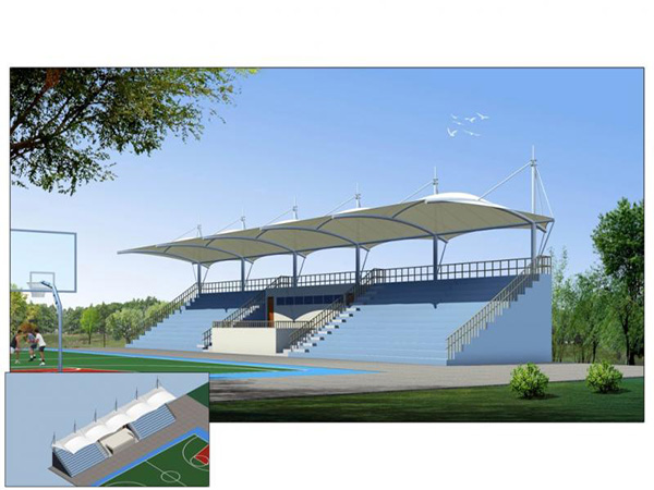 張拉膜看臺主要用于各類地方體育場主席臺雨棚,各類學校體育場看臺雨棚遮蓋,我公司是國內較早從事大懸挑張拉膜結構看臺設計施工的專業(yè)廠家,下面介紹一下我們在杭州市周邊縣市完工的一些張拉膜看臺設計施工案例,我公司先后在杭州周邊承接了杭州職業(yè)技術學院張拉膜看臺雨棚、浙江藝術職業(yè)學院張拉膜看臺罩棚、浙江旅游職業(yè)學院張拉膜看臺遮陽棚等設計施工項目,簡介如下: