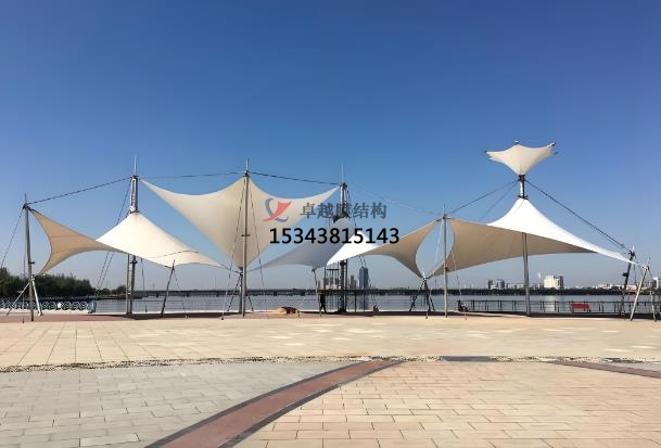 膜面的張拉與安裝:根據(jù)設(shè)計(jì)要求,在膜結(jié)構(gòu)上安裝各種配件,如索具、連接件、錨固件等。這些配件的安裝位置和方式直接影響到膜結(jié)構(gòu)的整體性能和穩(wěn)定性,因此需要嚴(yán)格按照設(shè)計(jì)要求進(jìn)行安裝,并確保安裝牢固可靠。膜面安裝時需通過張拉設(shè)備施加預(yù)應(yīng)力,確保膜結(jié)構(gòu)在荷載作用下的穩(wěn)定性。張拉過程中需注意膜面的均勻受力,避免局部應(yīng)力集中。安裝完成后需進(jìn)行整體檢查,確保膜結(jié)構(gòu)的外觀和功能符合設(shè)計(jì)要求。