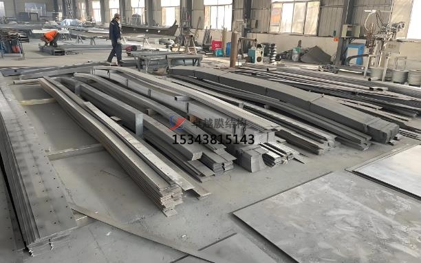 膜結(jié)構(gòu)生產(chǎn)的材料和加工:膜結(jié)構(gòu)的主要材料包括膜材和鋼結(jié)構(gòu)。根據(jù)設(shè)計(jì)要求,采購合適的膜材。常見的膜材有聚四氟乙烯(PTFE)膜材、聚氯乙烯(PVC)膜材等,采購時(shí)需注意膜材的質(zhì)量、性能和規(guī)格是否符合要求。我們的膜材通常采用進(jìn)口材料,具有高標(biāo)準(zhǔn)的阻燃、自潔和耐久性能。鋼結(jié)構(gòu)部分則根據(jù)設(shè)計(jì)圖紙進(jìn)行切割、焊接和打磨,確保其尺寸精確和表面光滑。我們會根據(jù)支撐結(jié)構(gòu)的設(shè)計(jì)要求,采購鋼材、鋁合金等材料,并進(jìn)行檢驗(yàn)和預(yù)處理,如除銹、防腐處理等。膜材的加工包括裁剪和焊接,使用先進(jìn)的裁剪及焊接生產(chǎn)線進(jìn)行,確保膜材的拼接精確和牢固。鋼結(jié)構(gòu)部分則通過CAD編輯到等離子切割,割出形狀后,用扁鐵包邊、打磨和刷油漆,確保其質(zhì)量和外觀。膜結(jié)構(gòu)的加工制作,膜結(jié)構(gòu)的展開形狀和尺寸,結(jié)合膜材的幅寬和特性,進(jìn)行裁剪設(shè)計(jì),確定每一塊膜片的形狀和尺寸,同時(shí)考慮到拼接縫的位置和方式,以減少材料浪費(fèi)和提高結(jié)構(gòu)性能。裁剪會使用到專業(yè)的裁剪設(shè)備,如數(shù)控裁剪機(jī),按照裁剪設(shè)計(jì)的圖紙對膜材進(jìn)行精確裁剪。裁剪過程中要注意控制裁剪精度,避免出現(xiàn)尺寸偏差和邊緣損傷。拼接縫合,將裁剪好的膜片通過熱合、縫合等方式進(jìn)行拼接,形成完整的膜結(jié)構(gòu)。拼接處要保證密封性能和強(qiáng)度,通常采用專用的膜材焊接設(shè)備或縫紉機(jī)進(jìn)行加工。支撐結(jié)構(gòu)的制作,支撐結(jié)構(gòu)也叫預(yù)埋件,預(yù)埋件的制作根據(jù)膜結(jié)構(gòu)的大小和設(shè)計(jì)要求進(jìn)行,厚度和長寬由CAD編輯到等離子切割而來‌?;A(chǔ)施工包括放線、切割地面、挖機(jī)破碎地面、混凝土放預(yù)埋板和地面修復(fù)等步驟。安裝過程中,將膜材與鋼結(jié)構(gòu)進(jìn)行精確連接,確保膜結(jié)構(gòu)的張拉和固定,使其在實(shí)際應(yīng)用中能夠承受各種環(huán)境條件,確保膜結(jié)構(gòu)的穩(wěn)固安裝。
