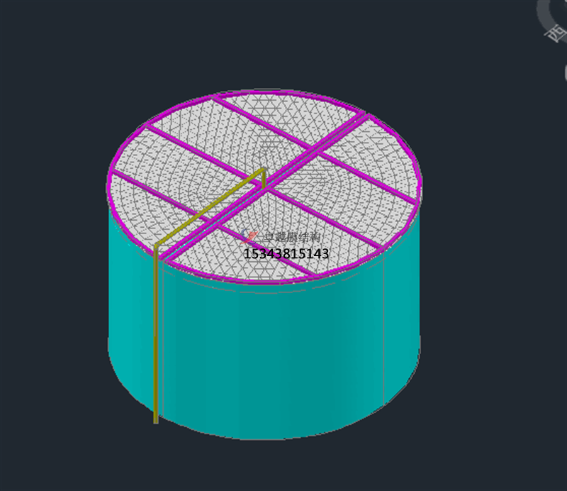 該圖為酸罐頂部膜結(jié)構(gòu)封閉設(shè)計圖紙頂視圖。