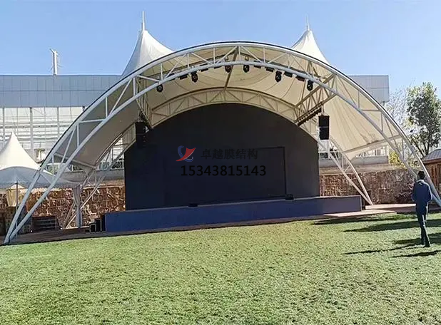 施工安裝:膜結(jié)構(gòu)舞臺(tái)的施工安裝需要嚴(yán)格按照設(shè)計(jì)要求進(jìn)行,確保膜材的張拉和固定位置正確,保證其穩(wěn)定性和安全性。