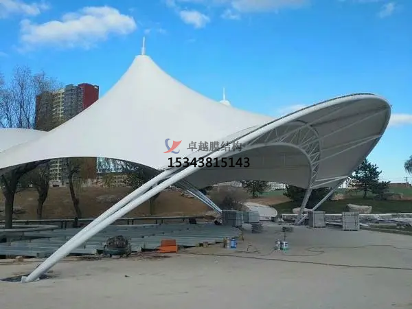 5.抵御天氣的影響:舞臺(tái)膜屋面的一個(gè)重要作用就是抵御各種天氣變化(如日曬、雨淋、風(fēng)雪等)對(duì)其內(nèi)部空間的影響,保持建筑物內(nèi)部的舒適性。選擇膜面的形態(tài)和材料時(shí)要考慮到所有可能的天氣狀況,并盡可能利用建筑本身等被動(dòng)方法來減少能量的消耗。